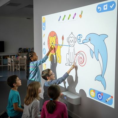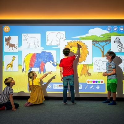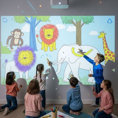 I bambini possono disegnare su un touchscreen con i loro animali preferiti.Questi animali magicamente appaiono sul muro quando li disegni e si muovono e rispondono al tatto.Questo nuovo gioco di pittura a proiezione per bambini è un'innovazione che combina creatività con divertimento e gioco interattivo, adatto a case, aule e centri giochi.