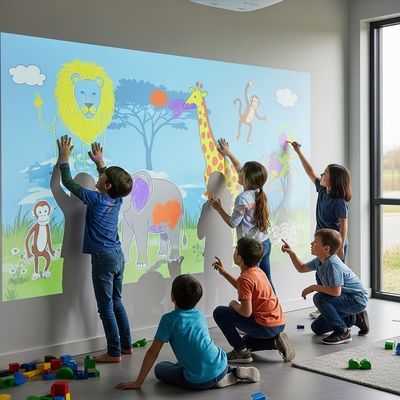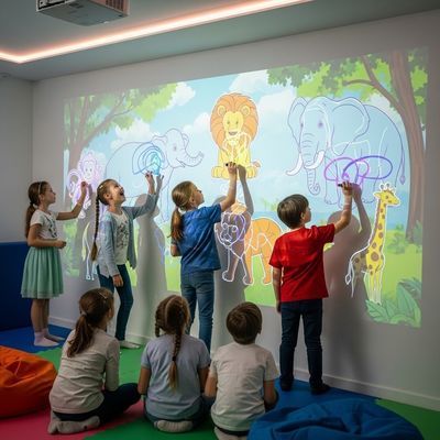 Il sistema di Interactive Wall Painting ispira la creatività dei bambini e migliora le loro abilità fisiche.Questa è una risorsa che giocherà l'arte in modo che possa guidarvi attraverso l'apprendimento creativoLa sua interattività continua a coinvolgere i bambini, incoraggiando la socializzazione e l'esercizio fisico.